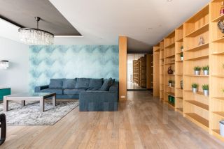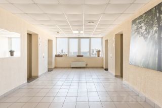 Приточно-вытяжная вентиляция, панорамное остекление, потолки 3 м. Установлены кондиционеры Kentatsu. В зоне гостиной большой угловой диван, журнальный стол, телевизор Sumsung.