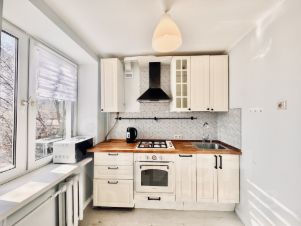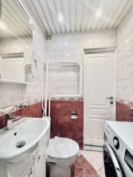 Установлен красивый кухонный гарнитур со столешницей из натурального дерева, большой 2-камерный холодильник, микроволновая печь, телевизор, стиральная машинка, все комнаты обставлены современной мебелью (из спальных мест есть 2-спальная кровать с ортопедическим матрасом и раскладной диван). Санузел в современной плитке. Для комфортного доступа в интернет проведена связь.