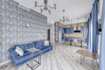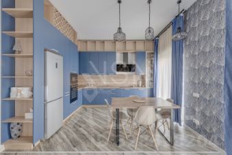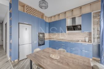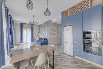 Квартира полностью мебелирована и укомплектована всем, готова к комфортному проживанию. В кухне вся необходимая мебель и техника, включая холодильник, кондиционер, посудомоечную машину, духовой шкаф.
