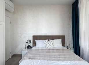 Квартира с эстетичным минималистичным интерьером в светлых тонах — пространство наполнено воздухом и светом, а из окон открывается красивый вид на город. Планировка идеально сбалансирована: отдельная спальня с большой кроватью, вместительным шкафом, кондиционером и выходом на балкон — ваше личное пространство для отдыха.