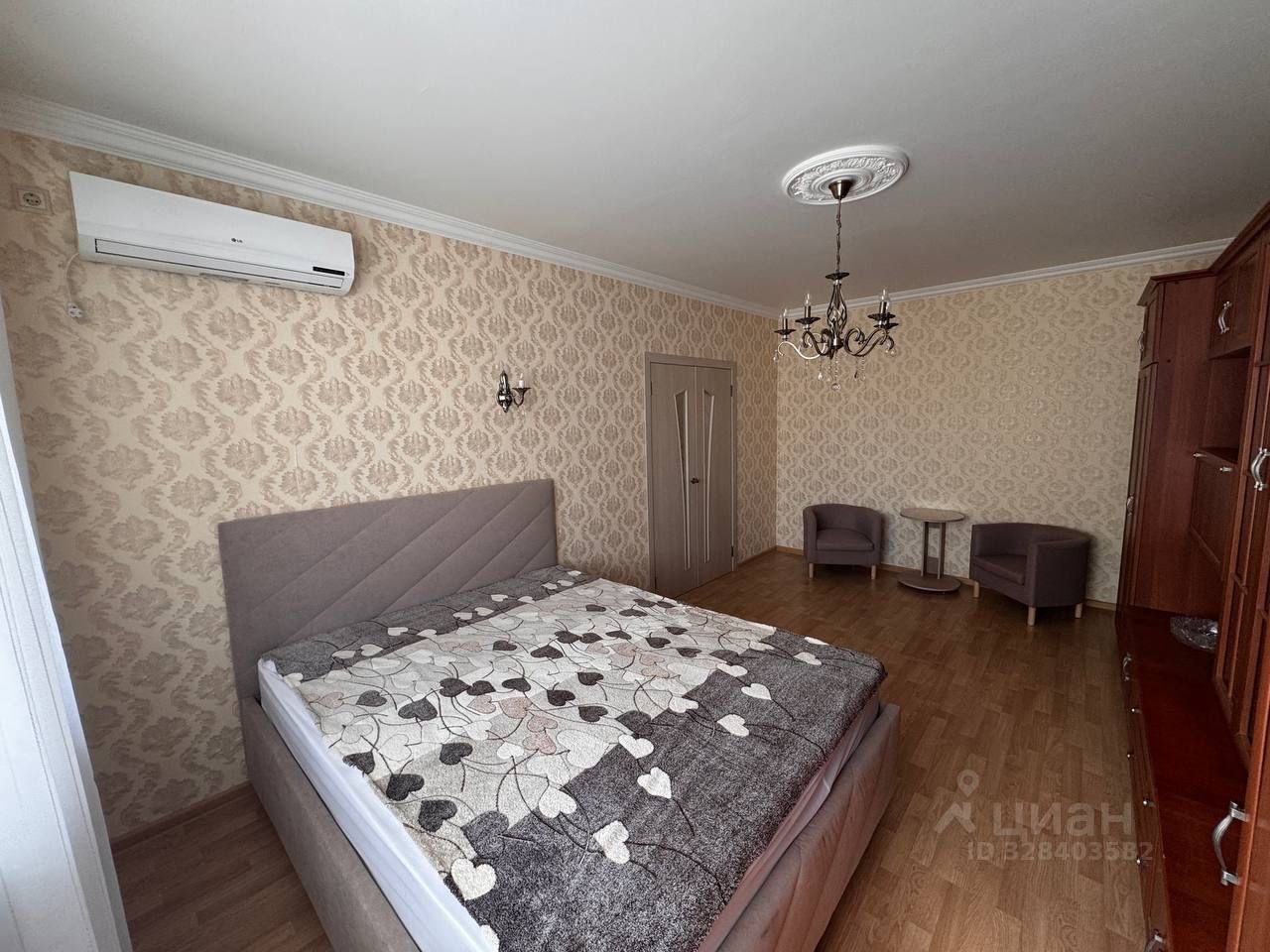 В квартире выполнен косметический ремонт, есть вся необходимая мебель и техника для комфортного проживания: кондиционер, холодильник, телевизор, стиральная машина. На кухне и в комнате также есть мебель. Санузел совмещённый, оборудован ванной. В квартире подключены интернет и телефон, что делает её готовой к проживанию без дополнительных хлопот.