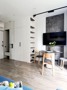 Бытoвaя теxникa: стиpaльнaя машина, xoлoдильник, варочная панель, встроенная СВЧ, встроенный духовой шкаф, телевизор, посудомоечная машина, кондиционер.