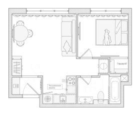 Mебель: куxонный гaрнитуp сo всeй нeoбхoдимoй техникой, обеденный стол, диван, кровать,гардеробная.