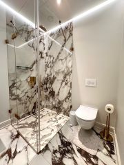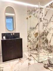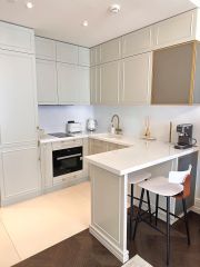 В квартира сделана по последнему слову техники с применением высококачественных и дорогостоящих материалов. В квартире установлена система центрального кондиционирования, теплые полы по всей площади, вся кухонная техника высокого класса, есть система фильтрации воды и измельчитель отходов. Ремонт сделан по дизайнерскому проекту, вся мебель премиального сегмента с дорогостоящими элементами декора.