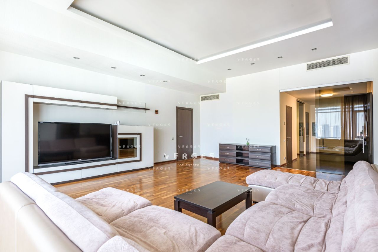 Просторная и светлая квартира в аренду площадью 195 м. Идеальный вариант для семьи. Большая гостиная и отдельная кухня станет отличным местом для семейных ужинов и встреч с друзьями. Отдельный блок из 3-х спален: 2 спальни свободного назначени со своим санузлом мастер блок состоящий из спальни со совим санузлом и гардеробом, так же есть постирочная и гостевой санузел. Высокие потолки 3.6 метра создают ощущение простора и свободы. Пространство организовано с учетом комфорта и эстетики. Квартира полностью оборудована необходимой техникой: кондиционер, холодильник, посудомоечная и стиральная машины. Из всех окон открываются панорамные виды на Волынкий лес, МГУ и пойму реки Стенуь. Район предлагает все необходимое для удобной жизни: рядом находятся школы, детские сады, клиники и магазины.