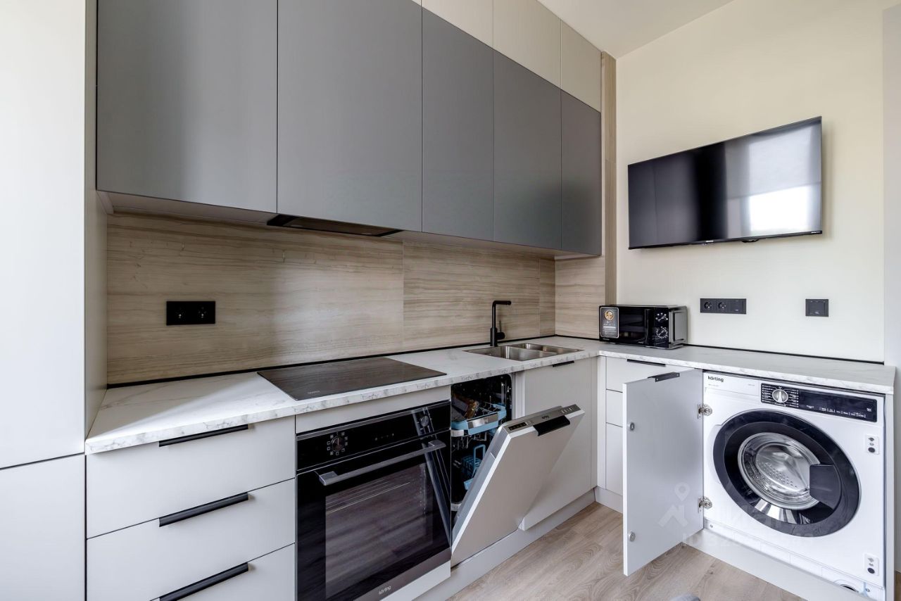 Выполнена абсолютно новая отделка в современном стиле. Апартаменты полностью готовы к проживанию и оснащены мебелью, бытовой техникой, посудой и аксессуарами: