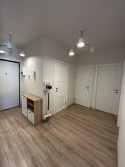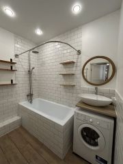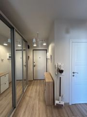 Квартира оформлена с качественным евроремонтом и полностью меблирована. Просторная кухня-гостиная оборудована всей необходимой техникой: холодильником, посудомоечной машиной и др.. В квартире раздельный санузел.