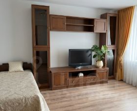 Эта светлая и уютная квартира — идеальный вариант для тех, кто ценит комфорт, тишину и при этом хочет оставаться в центре городской жизни. Интерьер выполнен в классическом стиле с акцентом на функциональность: просторная жилая зона с двуспальной кроватью и диваном, аккуратная кухня.
