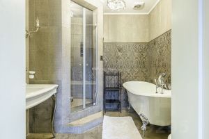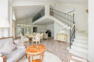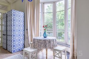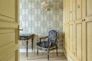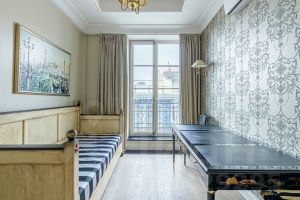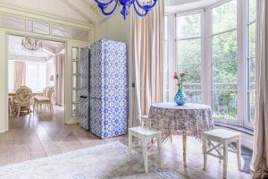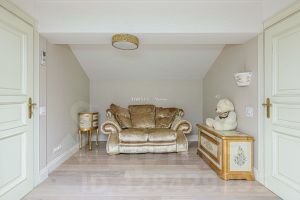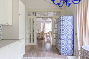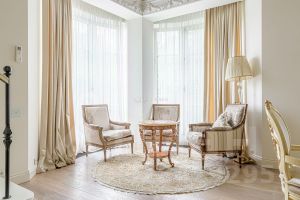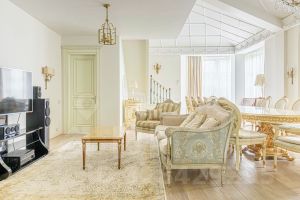 В квартире выполнена отделка в классическом стиле в светлых тонах.