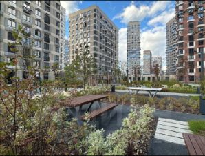 Площадки для занятия спортом, прогулочные зоны, а также набережная Москвы-реки.