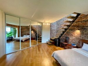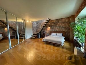 Кухня-гостиная 30 кв/м (потолок 5 м) и одна спальня 25 кв/м (потолок 3 м). Балкон, на котором можно посидеть и выпить бокал любимого напитка. Два санузла. Гардеробная. Установлена бытовая техника, лофт полностью меблирован. Интернет, TV.