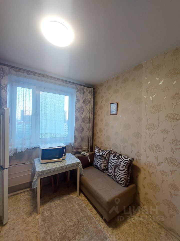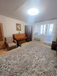В квартире сделан косметический ремонт, что создает комфортную атмосферу для проживания. Просторная кухня оборудована всей необходимой мебелью и техникой, включая холодильник и стиральную машину. В комнате также есть удобная мебель и телевизор. Санузел раздельный, в ванной установлена ванна. Высота потолков составляет 2,64 метра, что добавляет ощущение простора.