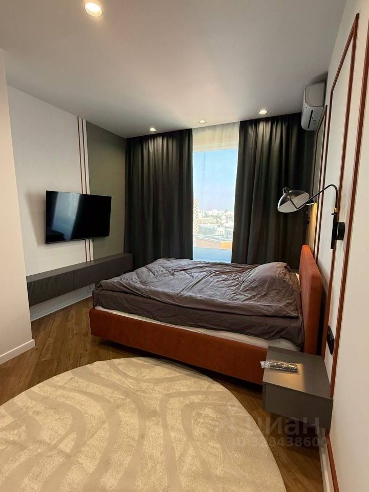 Удобная планировка: просторная кухня-гостиная с зоной отдыха (диван, ТВ) и отдельная изолированная спальня с полноценной кроватью и вместительным шкафом. Квартира идеально подходит как для одного человека, так и для пары.