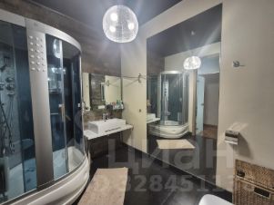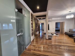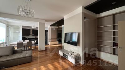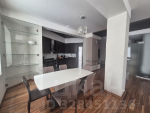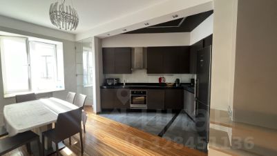 Квартира с огромной кухней и гостиной в одном пространстве, двумя изолированными спальнями, двумя санузлами, большой гардеробной комнатой и застеклённой лоджией. Отделка квартиры выполнена в современном стиле, мебель и техника от европейских производителей. Высота потолков — 3,3 м. В квартире есть вся необходимая мебель и бытовая техника для комфортного проживания семьи.