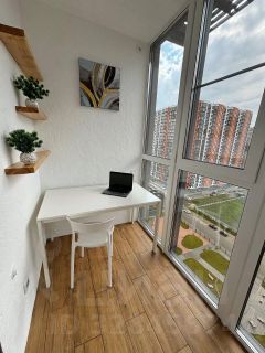 Большой утепленный балкон (теплый пол и стеклопакет) просторный кабинет и лаунж-зона, откуда открывается шикарный вид!