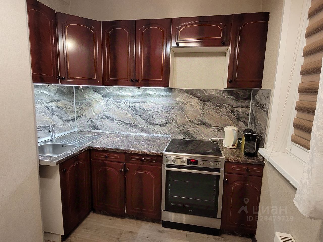 В комнате современная мебель: ДВУСПАЛЬНАЯ КРОВАТЬ с ортопедическим матрасом, 4-х створчатый зеркальный шкаф, комод, и так по мелочи. На кухне гарнитур под единой столешницей, стол. Бытовая техника: большой двухкамерный холодильник Bosch, электроплита со стеклокерамикой AEG, СМА Bosch, кофемашина Delonghi. В квартире есть застекленный балкон, КОНДИЦИОНЕР, интернет.