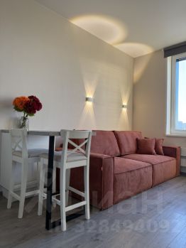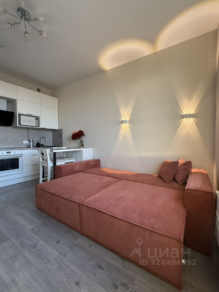 Выполнен свежий ремонт, студия готова к проживанию.В комнате и на кухне есть вся необходимая мебель. Кухонная зона компактная, площадью 4 кв. м, но оснащена всей необходимой техникой: холодильник, духовой шкаф, плита, вытяжка, микроволновая печь. Так же имеется кондиционер, утюг, мини-пылесос, напольная сушилка для белья, напольный светильник,новый телевизор, новый диван-кровать раскладывается в 3-х вариациях.