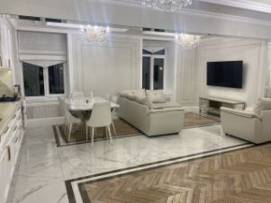 Без комиссии. Предлагается в долгосрочную аренду просторная и светлая в современном исполнении квартира в с 3-мя спальнями и большой гостиной, объединенной с кухней в сталинском доме в Москве. Просторная кухня площадью 25 кв. м с современным дизайнерским ремонтом — идеальное место для семейных обедов и встреч с друзьями. Квартира оборудована всем необходимым для комфортного проживания. В комнатах и на кухне есть мебель, поэтому можно сразу заселиться без дополнительных хлопот. Установлена вся необходимая техника: кондиционер, холодильник, посудомоечная машина, телевизор и стиральная машина. В ванной комнате есть ванна и душевая кабина, а также один совмещённый и один отдельный санузел. Дом находится в хорошем состоянии, есть два пассажирских лифта и мусоропровод, что делает проживание ещё более удобным. На территории дома предусмотрена наземная парковка, поэтому можно без проблем оставить автомобиль рядом с домом. Район обладает развитой инфраструктурой. В пешей доступности находятся школы, детские сады, клиники и магазины. Отличная транспортная доступность: рядом остановки общественного транспорта, что позволяет быстро добраться до любой точки города.