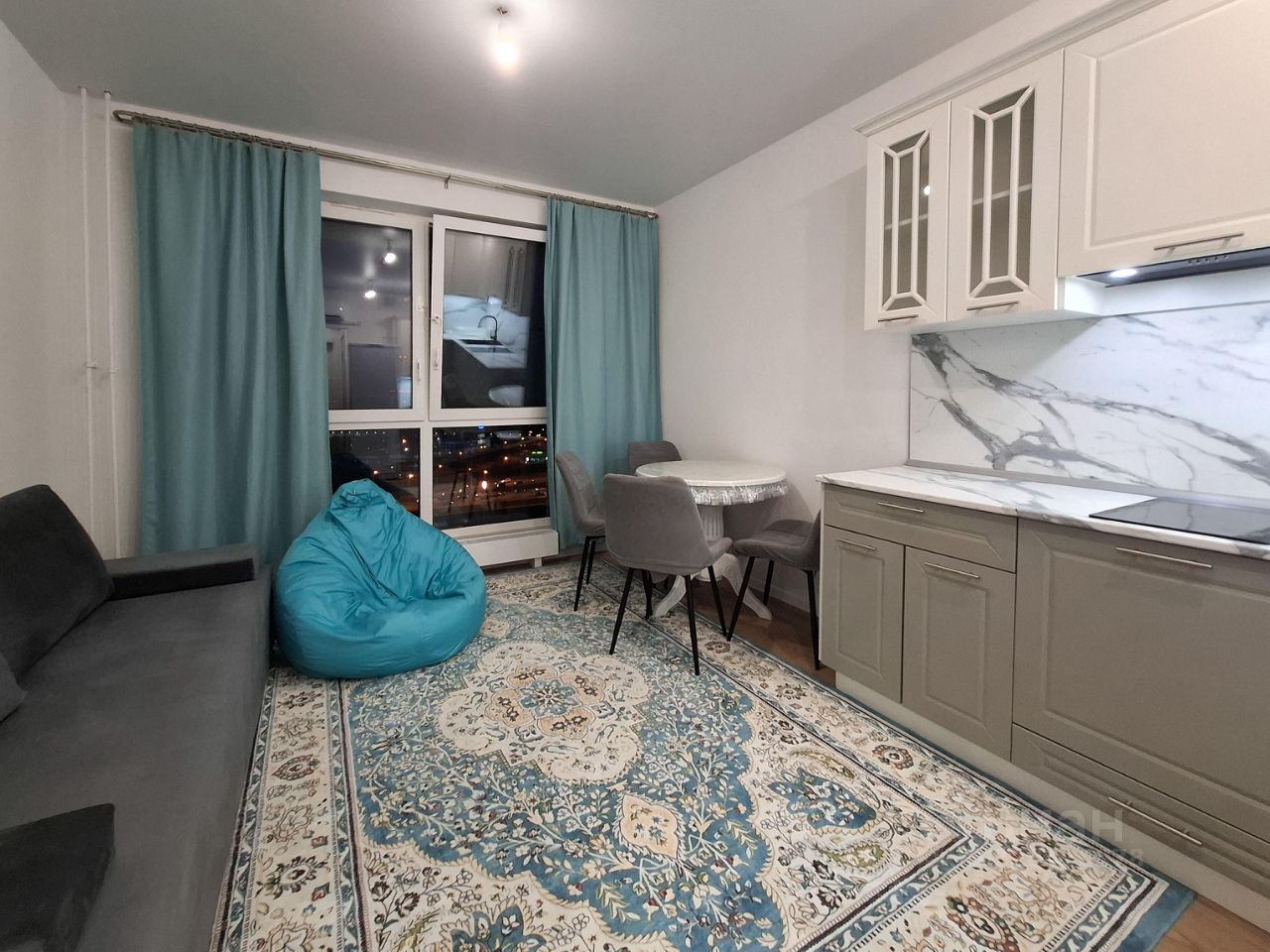 Студия полностью готова к заезду: оборудована всем необходимым для комфортного проживания. В наличии удобный раскладной диван, вместительный шкаф для хранения вещей, уютное кресло-мешок. Из техники: кондиционер, пылесос, электрическая плита, духовой шкаф, вытяжка, а также СВЧ. В ванной комнате — душевая кабина и стиральная машина. Заезжай и живи!