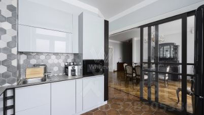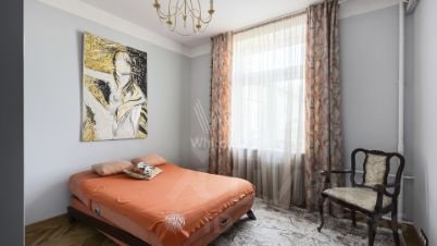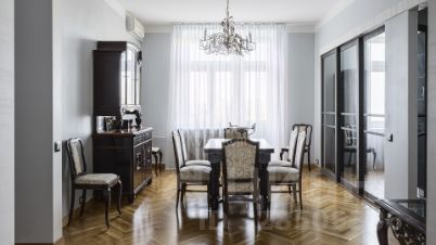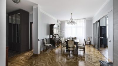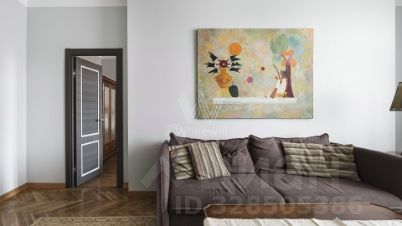 Просторная квартира с 2-мя спальнями площадью 105 м² в сталинском доме вблизи МГУ. В квартире выполнен авторский ремонт в классическом стиле. На полу уложен светлый паркет, интерьер оформлен в бежевых тонах. Из просторной гостиной можно выйти в столовую на 6 персон. Кухня оснащена бытовой техникой. В спальнях оборудованы двуспальные кровати и шкафы для хранения вещей. Квартира меблирована антикварной мебелью и укомплектована кондиционерами. Окна гостиной выходят на восточную сторону, а из столовой можно наблюдать живописные закаты.