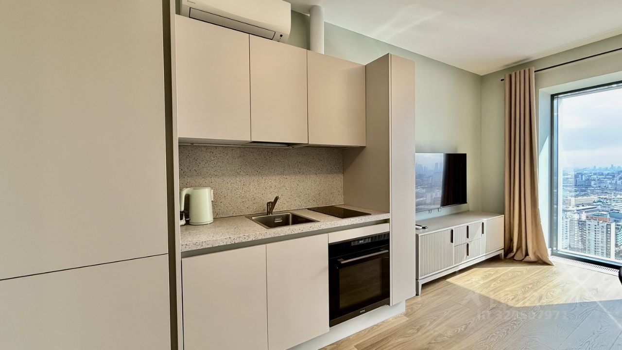 Квартира полностью укомплектована мебелью и бытовой техникой (стиральная машина с функцией сушки, посудомоечная, холодильник, варочная панель, духовой шкаф, микроволновка, вытяжка, кондиционер, телевизор).