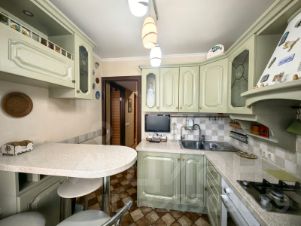 Кухня 6 кв.м.: гарнитур массив дерева, Италия, холодильник встроенный HANSA, стиральная машинка ARISTON, выход на застекленный балкон 3,5 кв.м.