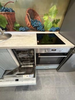 Квартира полностью готова к проживанию. В ней сделан современный ремонт, установлена вся необходимая мебель и техника: холодильник, посудомоечная машина, телевизор и стиральная машина. Планировка включает совмещенный санузел с ванной и лоджию, где можно устроить уютное место для отдыха.