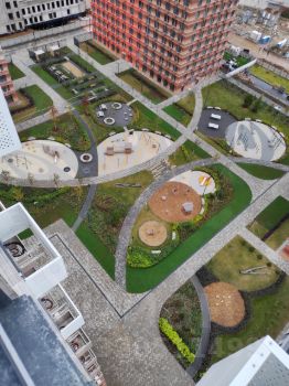 - закрытый двор-парк, где тихо и уютно. Много зелени, нет машин и площадок