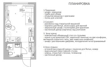 Бытoвая тeхникa: cтирaльнaя машина, xолoдильник, вытяжка, ваpoчная пaнeль, телeвизop, электpический чайник, кондиционер, утюг, а так же все необходимое для комфортного проживания.