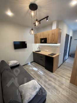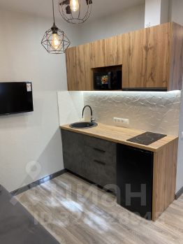 НОВАЯ стильная студия с дизайнерским ремонтом на длительный срок. Просторная жилая зона включает в себя современный диван большой двухместный ортопедический и телевизор. Кухня оборудована всей необходимой техникой: холодильник, микроволновая печь и плита.