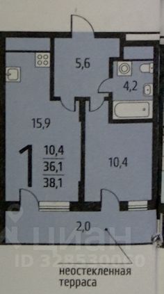 Рациональная планировка, фактически евродвушка. Большая терраса, выход на которую и из кухни- гостиной, и из комнаты-спальни.