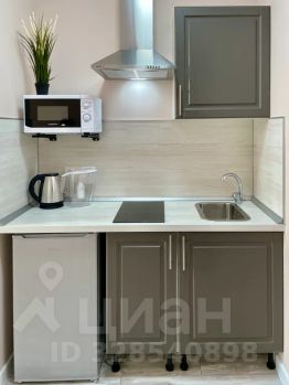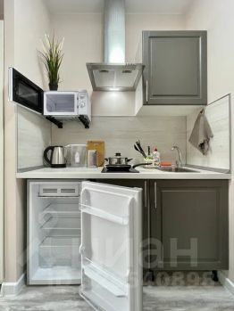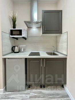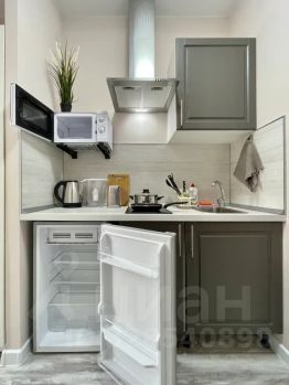- Кухня с холодильником, плитой, микроволновкой, чайником и посудой