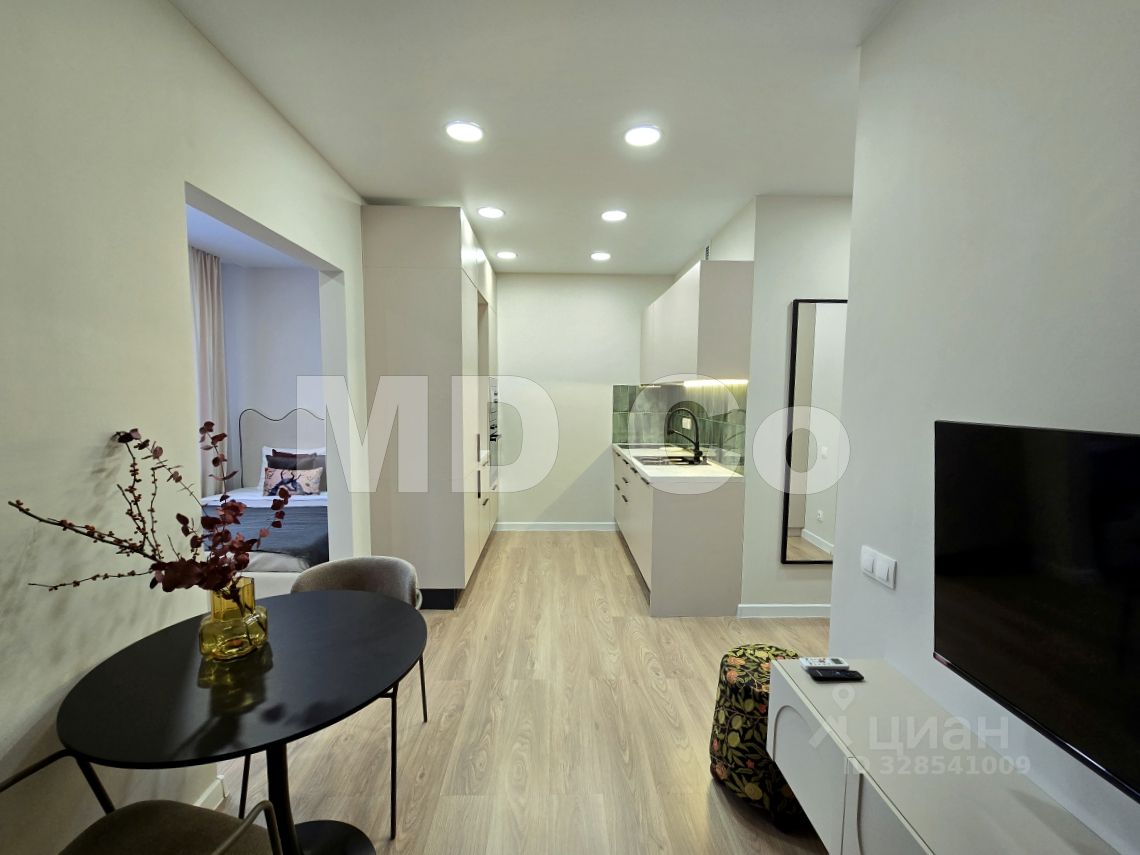 Планировка: Просторная кухня-гостиная (13 м²) для отдыха и приема гостей, уютная выделенная спальная зона (12 м²). Совмещенный санузел.