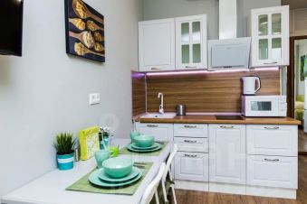 - Кухня с холодильником, плитой, микроволновкой, чайником и посудой