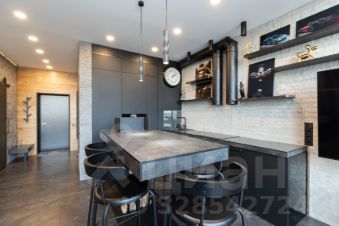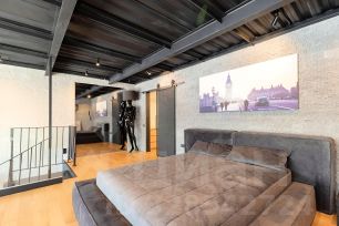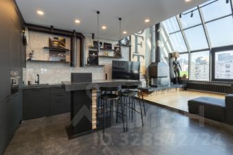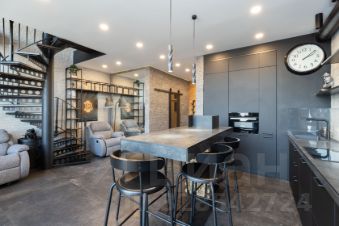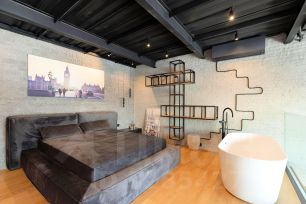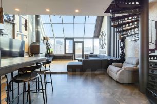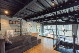 На 1 этаже при входе в пентхаус расположена прихожая с вместительной гардеробной и гостевым санузлом, далее просторная кухня оборудованная всей необходимой мебелью и техникой для Вашего комфортного проживания, гостиная с дровяным камином и большим диваном, с которой можно выйти на террасу и полюбоваться городским пейзажем и закатом, а утром можно насладиться рассветом. На второй этаж Вы поднимаетесь по круговой лестнице и попадаете в спальню с отдельно стоящей ванной, как в дорогих отелях. Открытая планировка и отсутствие стен в спальне добавляют простора и создают общее пространство с первым этажом. Также на втором этаже находится санузел с душевой и гардеробная для Ваших вещей. Продуманная планировка и дизайн с стиле ЛОФТ создают аутентичную атмосферу и незабываемые ощущения. Все решения в дизайне и мебели кастомные и выполнены в единственном экземпляре.