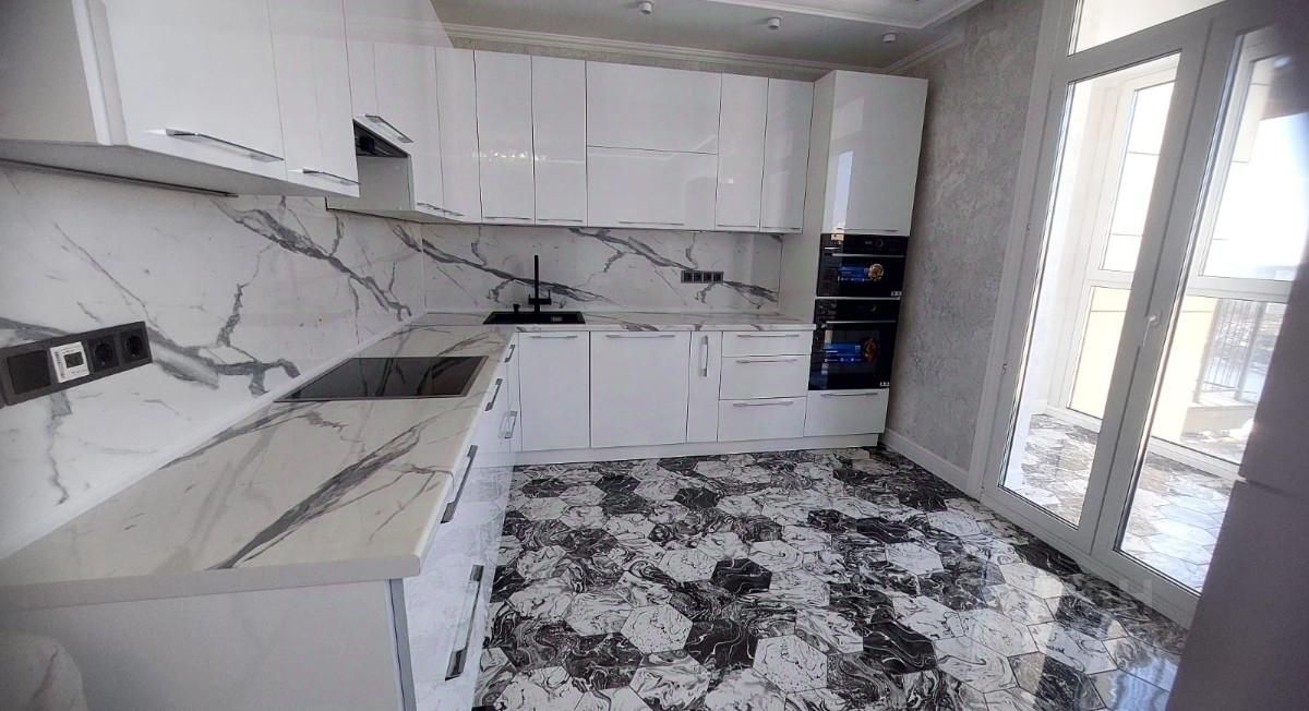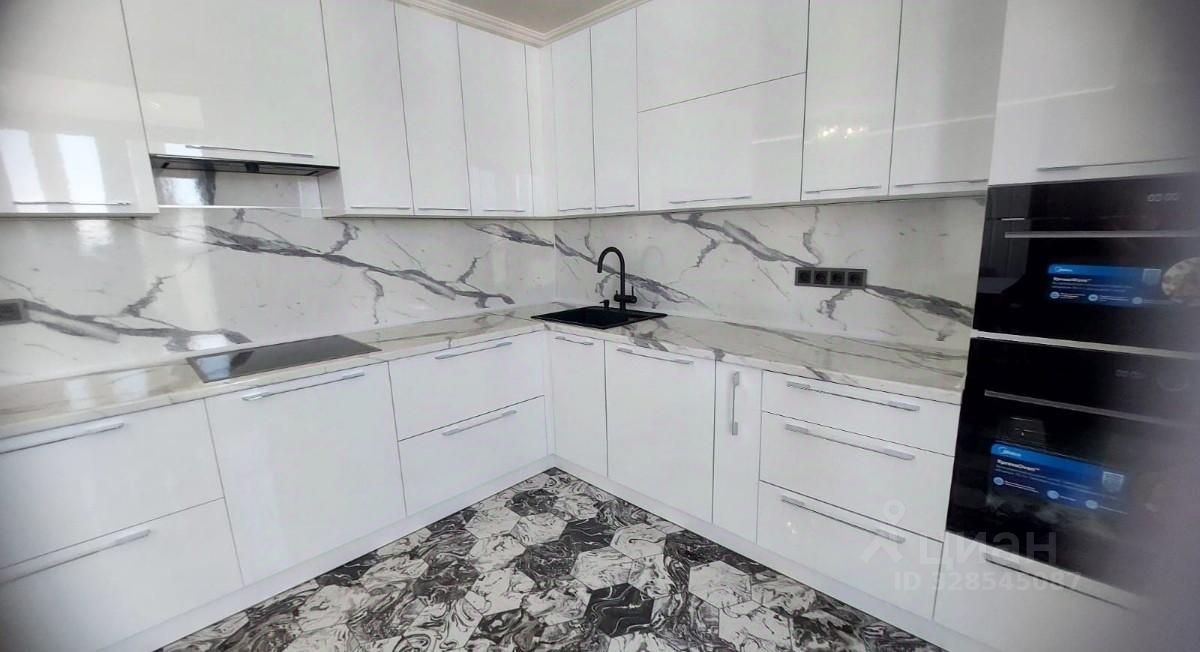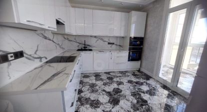 Внутри квартиры выполнен качественный евроремонт. Кухня площадью 15 кв. м оборудована всей необходимой техникой: холодильником, посудомоечной машиной и телевизором. В комнатах и на кухне есть мебель, поэтому можно сразу заселяться без дополнительных хлопот. В квартире два совмещённых санузла, один из которых оборудован ванной, что особенно удобно для семей с детьми.
