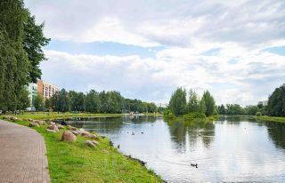 Рядом находятся продуктовые магазины, салон красоты, детские кружки. Во дворе расположен сад и школа. Для детей предусмотрены две большие игровые площадки. В шаговой доступности набережная с озером, парк. Летом можно устраивать пикники и велопрогулки, зимой — кататься на лыжах.
