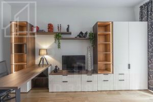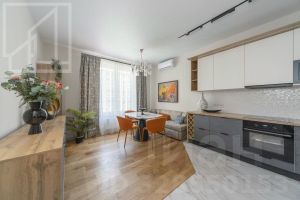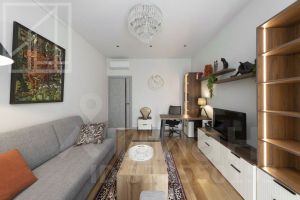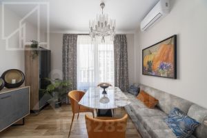 Функциональная планировка квартиры включает в себя: спальню со своим санузлом, кухню с зоной отдыха, комнату свободного назначения, кабинет с балконом, санузел, гардеробную. Квартира полностью укомплектована мебелью и необходимой техникой: кондиционеры, стиральная и сушильная машины, телевизоры, система фильтрации воды. Квартира солнечная, окна выходят на две стороны (во внутренний двор).