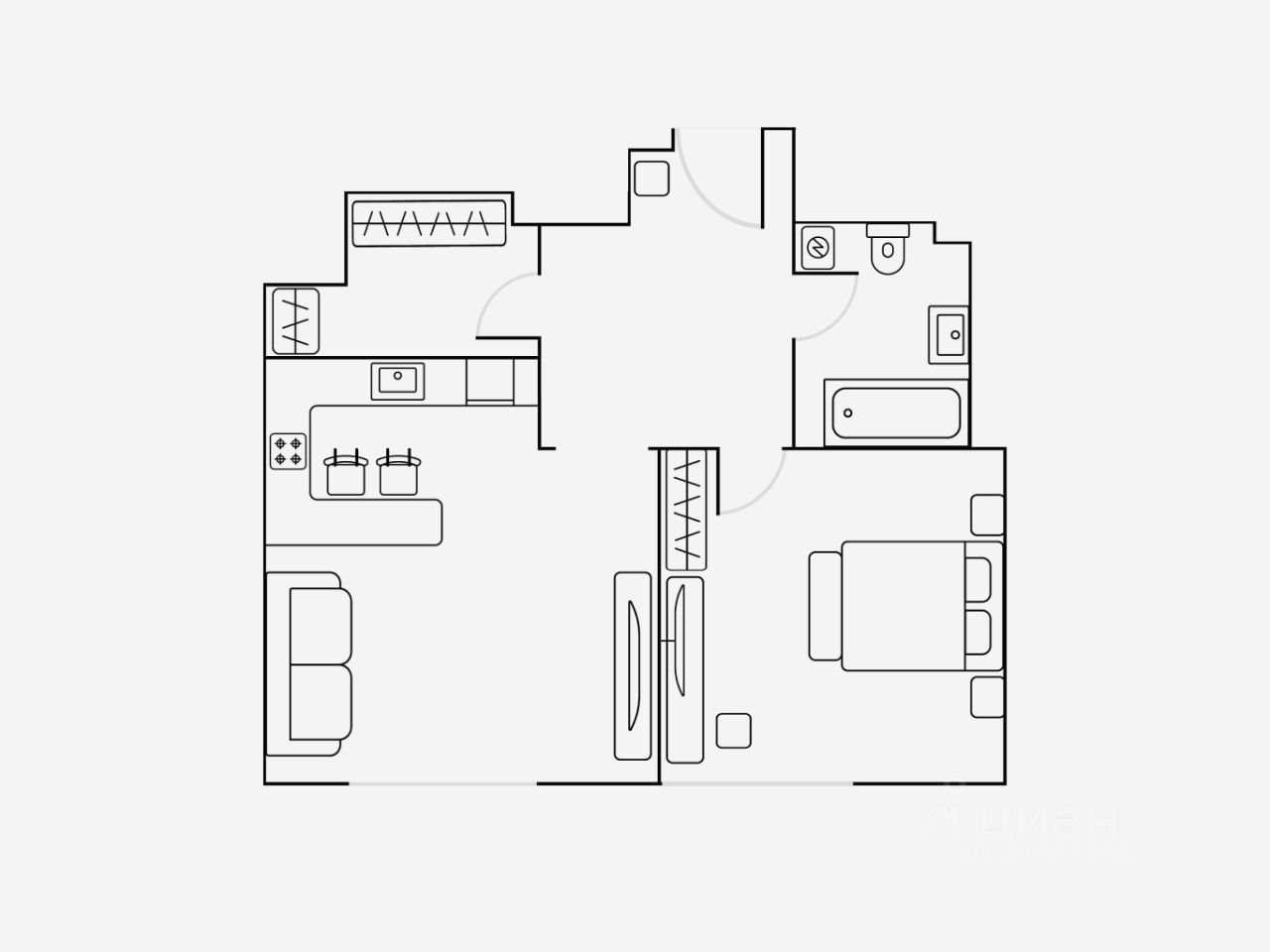 • 4 спальных места: двуспальный раскладной диван и двуспальная кровать