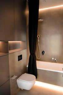 В КВАРТИРЕ: 2 с/узла (гостевой и мастер с/у), гардеробная комната с продуманным оснащением, спальня, кухня-гостиная. Ремонт делали для себя: инженерия, сантехника, встроенная техника и мебель, все элементы декора, премиальный свет, мягкая мебель, настенные и напольные покрытия - дорогостоящие материалы и комплектующие. Кондиционирование, датчики теплых полов, аквастопы и датчики протечек - все продумано до мелочей.