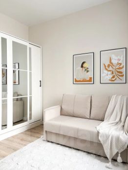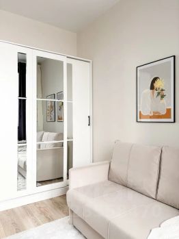 В спальной зоне диван, вместительный шкаф для хранения вещей.