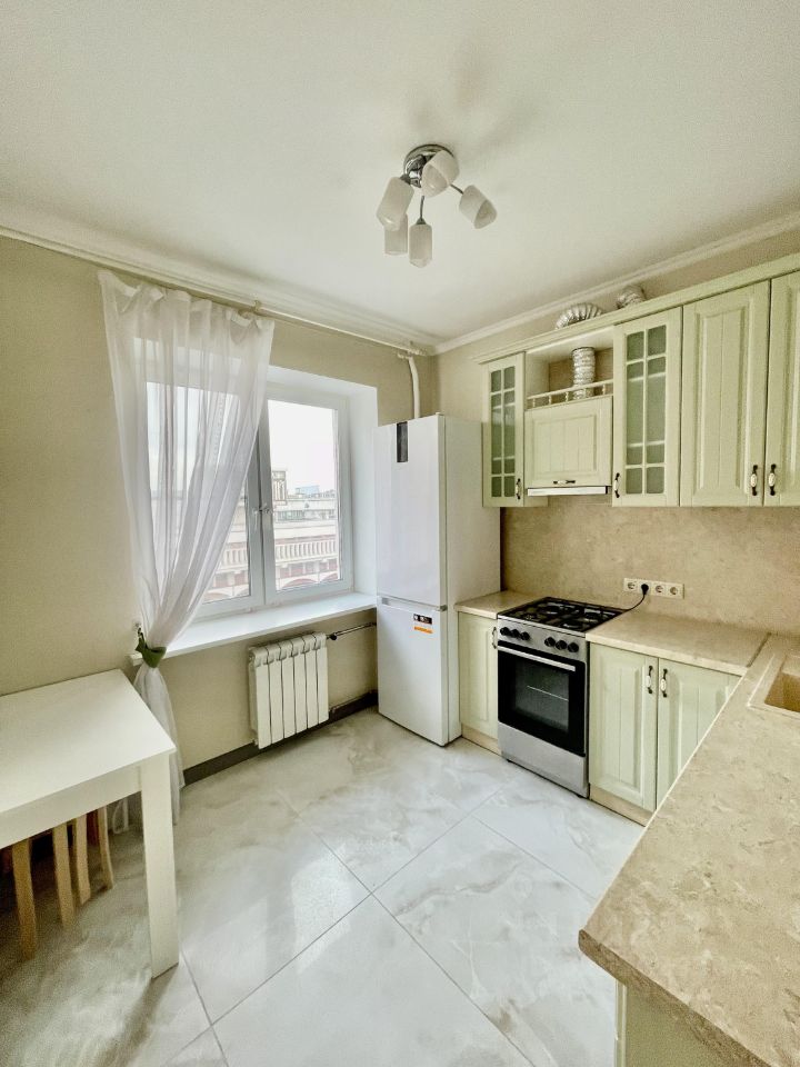 В квартире сделан дизайнерский ремонт, что создает атмосферу уюта и комфорта. На кухне есть вся необходимая мебель и техника: холодильник, стиральная машина. Ванная комната оборудована ванной, что позволит вам расслабиться после рабочего дня. Для удобства жильцов в доме работает пассажирский лифт, а также имеется мусоропровод, что значительно упрощает быт.