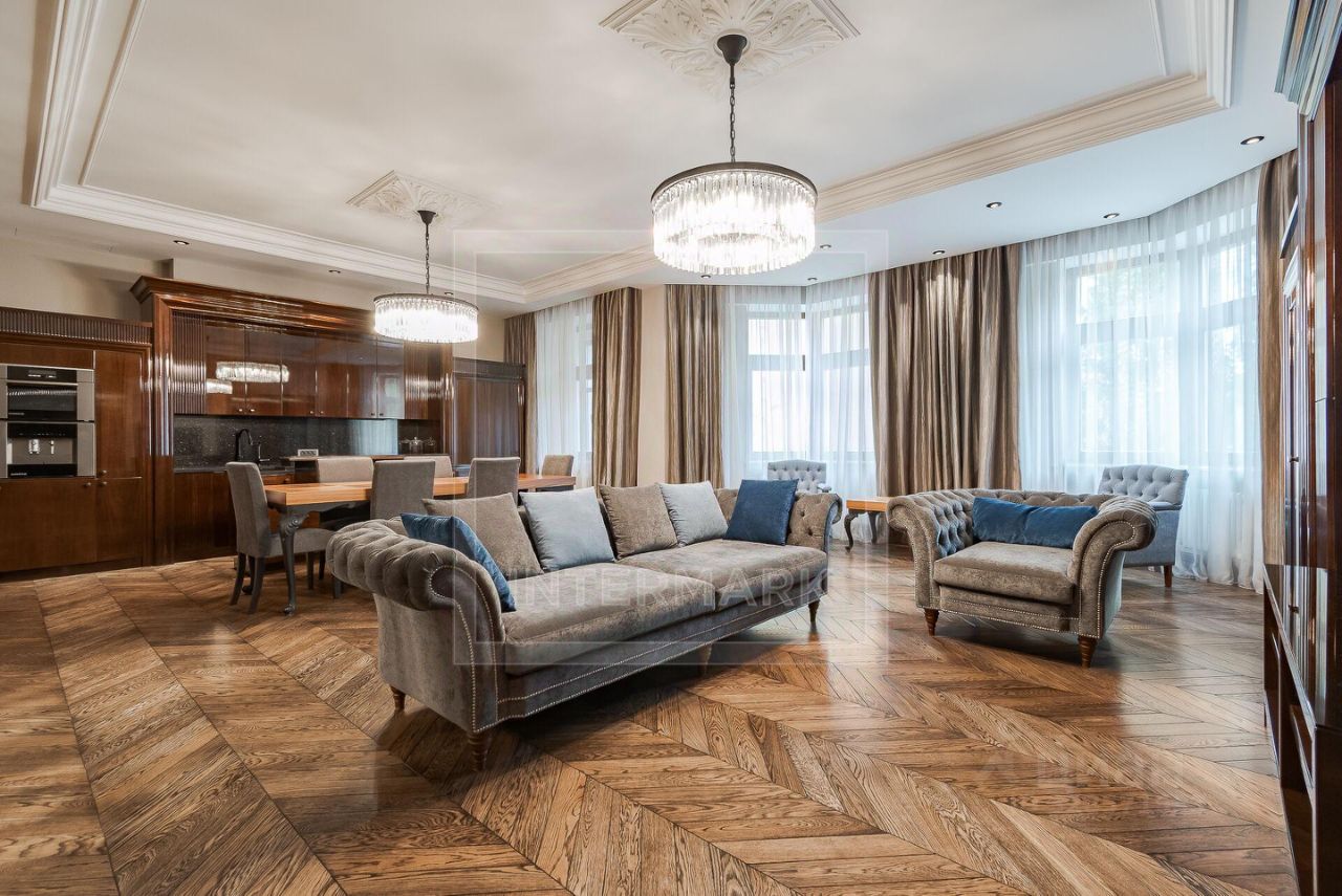 ID 32342: Шикарная 3-комнатная квартира в премиальном ЖК GREEN PLAZA на Тверской. Общая площадь 164 кв. м., расположена на 2 этаже. Выполнен дизайнерский ремонт с использованием только натуральных высококачественных материалов. Полная комплектация мебелью из дорогих сортов древесины, бытовой техникой и сантехникой престижных марок. Установлен бойлер, кондиционеры, стиральная и сушильная машины, проведен высокоскоростной интернет. Удобное и грамотное зонирование пространства: просторная студия с кухней, 2 спальни, гардеробная, 2 ванные комнаты, застекленная лоджия. Из окон открываются виды в зеленый двор. Жилой комплекс относится к премиум-сегменту: презентабельная входная группа с круглосуточной охраной, 1 машино-место в подземной парковке дома включено в стоимость. В ближайшем доступе развитая инфраструктура района с множеством магазинов, кафе, ресторанов, музеев, памятников архитектуры, мест для прогулок и занятий спортом. Можно с детьми. Можно с животными.