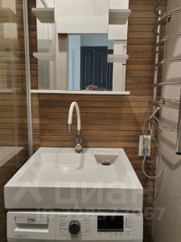 Совмещенный санузел выполнен в светлых тонах с современной сантехникой.