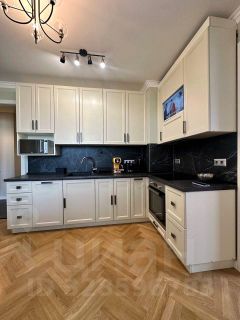 2 просторные изолированные комнаты, полностью готовы к проживанию, так же кухня гостиная - 12 кв.м. Оформлена в современном стиле и полностью укомплектована мебелью и техникой: посудомоечная машина на 8 персон, духовой шкаф, индукционная варочная панель, вытяжка, кофемашина, чайник, телевизор, холодильник и кондиционер
