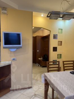 Евроремонт, импортная современная мебель: удобный диван, встроенный шкаф-купе, кухонный гарнитур с единой столешницей.