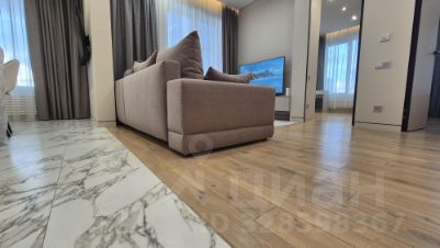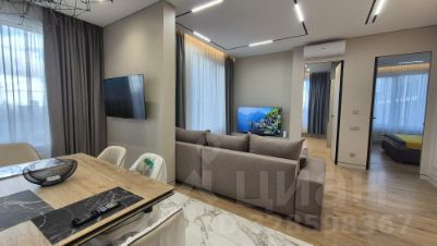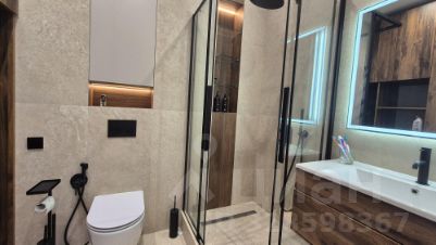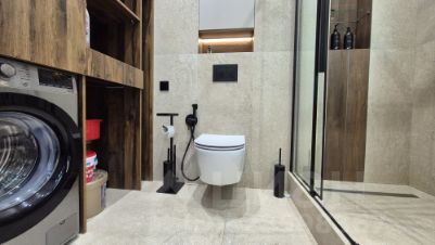 В квартире сделан дизайнерский ремонт, что создает уютную и современную атмосферу. Кухня полностью оборудована мебелью и техникой, включая холодильник, посудомоечную машину и кондиционер. В комнатах также есть мебель, а для вашего удобства — телевизор и стиральная машина. Ванная комната оснащена душевой кабиной, что добавляет комфорта вашему проживанию.