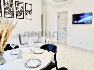 Трёхкомнатная квартира — с высокими потолками и панорамными окнами. Просторная планировка, много света, комнаты не проходные. Подойдёт семье, паре с рабочими кабинетами или для посуточной аренды — локация это позволяет.
