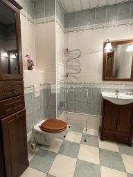 Планировка: большая гостиная, спальня с кроватью king size и большим шкафом-купе; комната с раскладным диваном и выходом на застекленную лоджию, просторная ванная комната с джакузи и душевой кабиной, гостевой санузел; высокие потолки, окна выходят на две стороны (тихий двор и улицу).