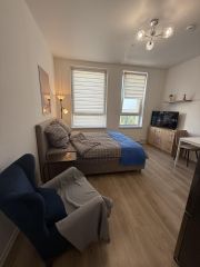Срок заезда с 1 мая 2026 г. Сдается в аренду квартира-студия на длительный срок (договор найма-минимум 11 месяцев,собственник,комиссии нет). Транспортная доступность-остановка автобуса 50 метров, до метро Пыхтино- 7 минут, аэропорт "Внуково"пешком дойти можно. Все необходимые магазины рядом. В доме есть аптека,пекарня,Вкусвилл.Окна выходят на тихий двор. Рядом -"Боровский парк", Пыхтинский пруд с зонами отдыха.Техника (микроволновая печь,холодильник,телевизор,стиральная машина,чайник,подушки, одеяло) и мебель для комфортного проживания есть.Высокие потолки-2.5 м.Состояние помещения-соответствует фото и видео,всё снято недавно. Отдельно оплачивается электричество,вода, водоподогрев и водоотведение по счетчикам , вывоз мусора + интернет(если нужен). Сдается для одного человека.С животными-нельзя. На звонки не отвечаю-много ненужной информации,напишите про себя. Агенты-не звоните мне.
